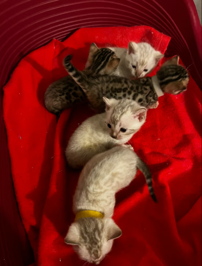 Meet our beautiful, rare tri-colored Bengal kittens, known for their playful spirit and affectionate nature. These delightful companions are sure to bring joy to any household. Each kitten comes microchipped, vaccinated, wormed, flea-treated, and health-checked by a vet. Once paid for, we provide regular updates, including pictures and videos of your little one until pick-up!